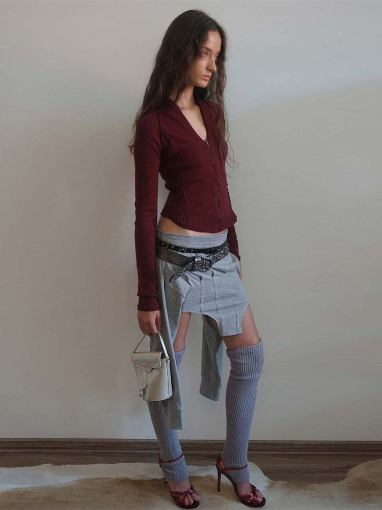 Open Collar Knit Zip-Up Deep Plum