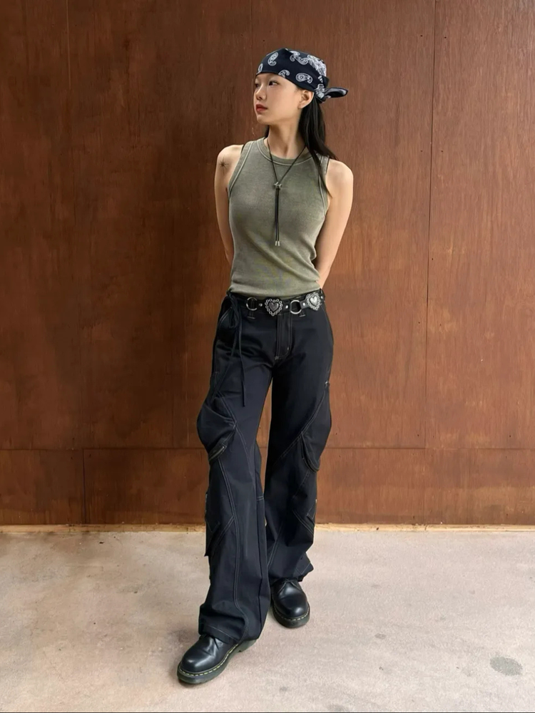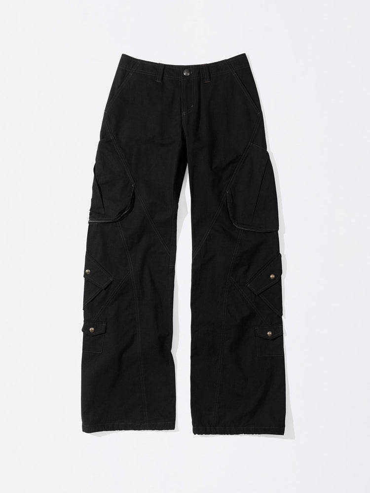 XS:着丈 101 / ウエスト 34.5 / ヒップ 46 / 太もも 29.5 / 股上 24 / 裾 26