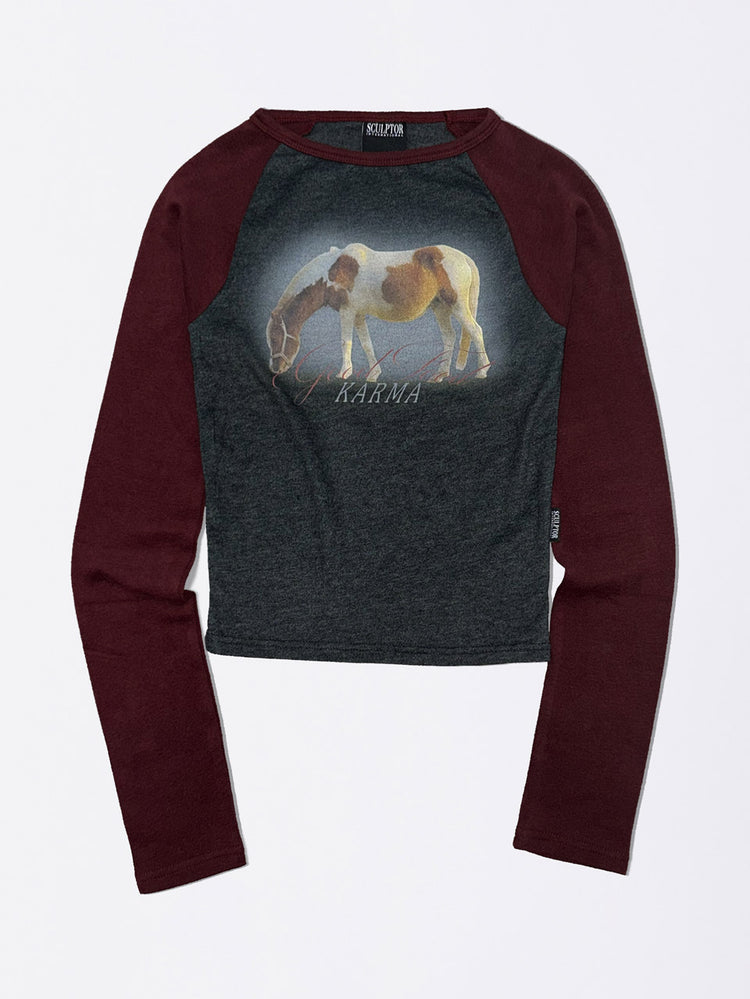 Good Karma Raglan Tee Charcoal/Burgundy