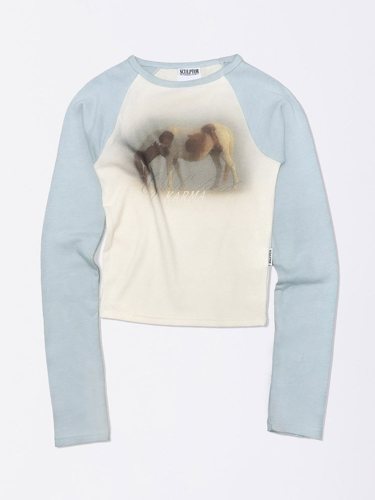Good Karma Raglan Tee Cream/Baby Blue