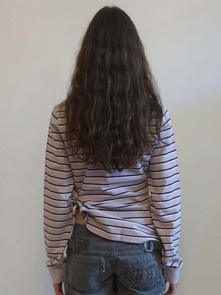 Shirring Tennis Shirt Lavender Stripe