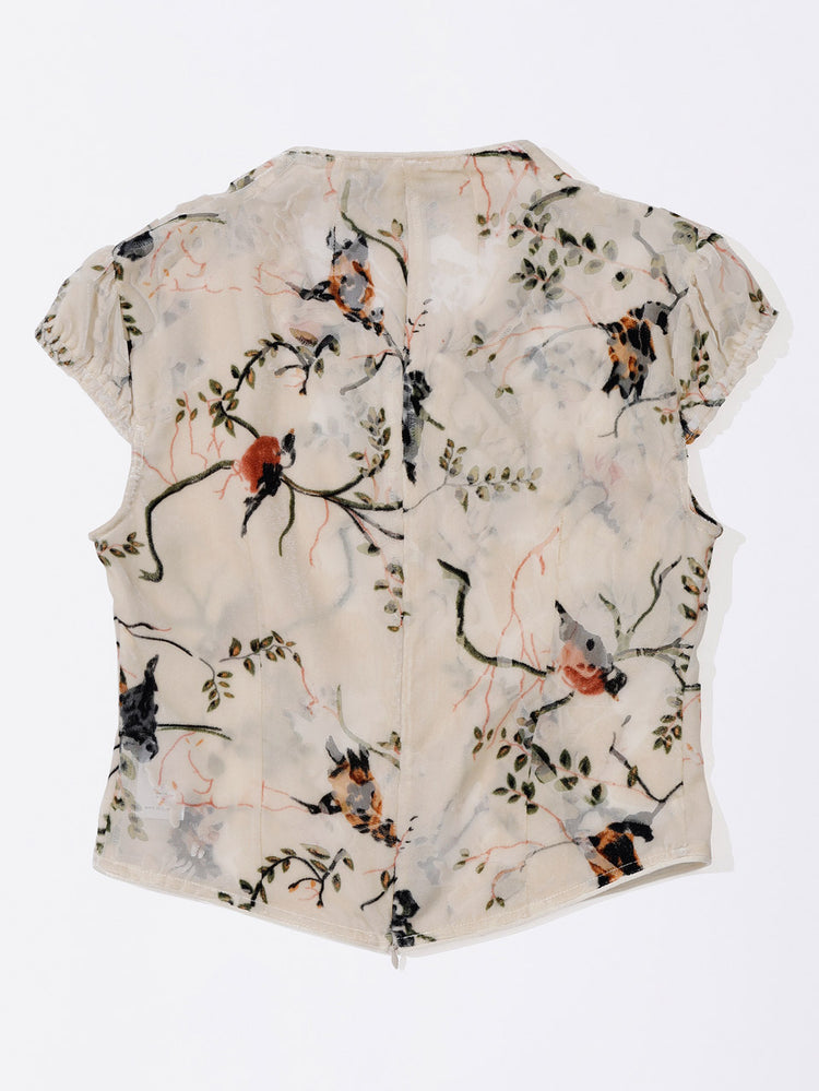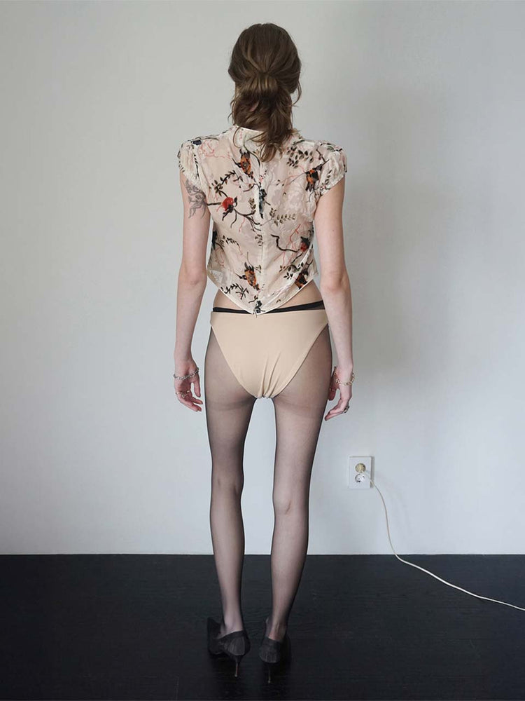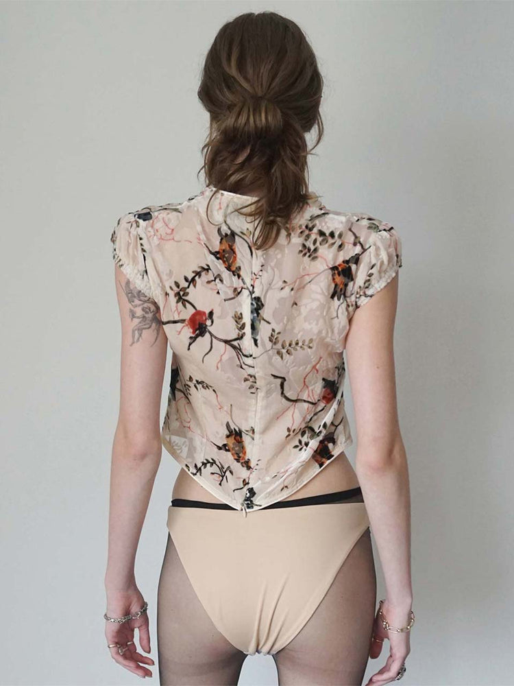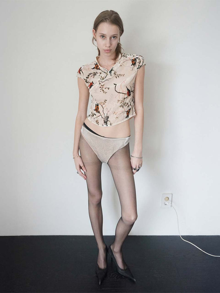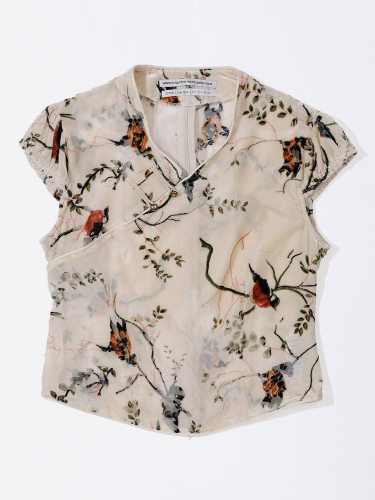 Velvet Qipao Blouse Beige