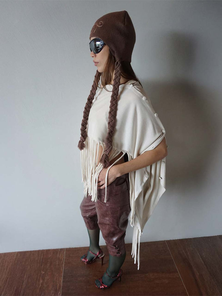 Versatile Fringe Cape Dusty White