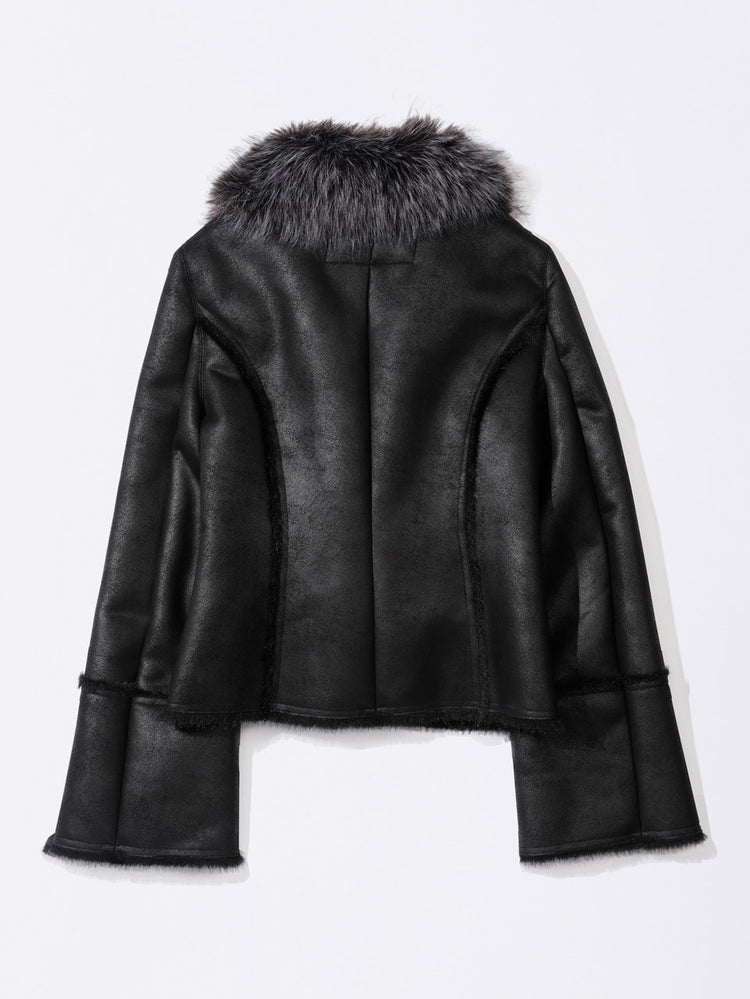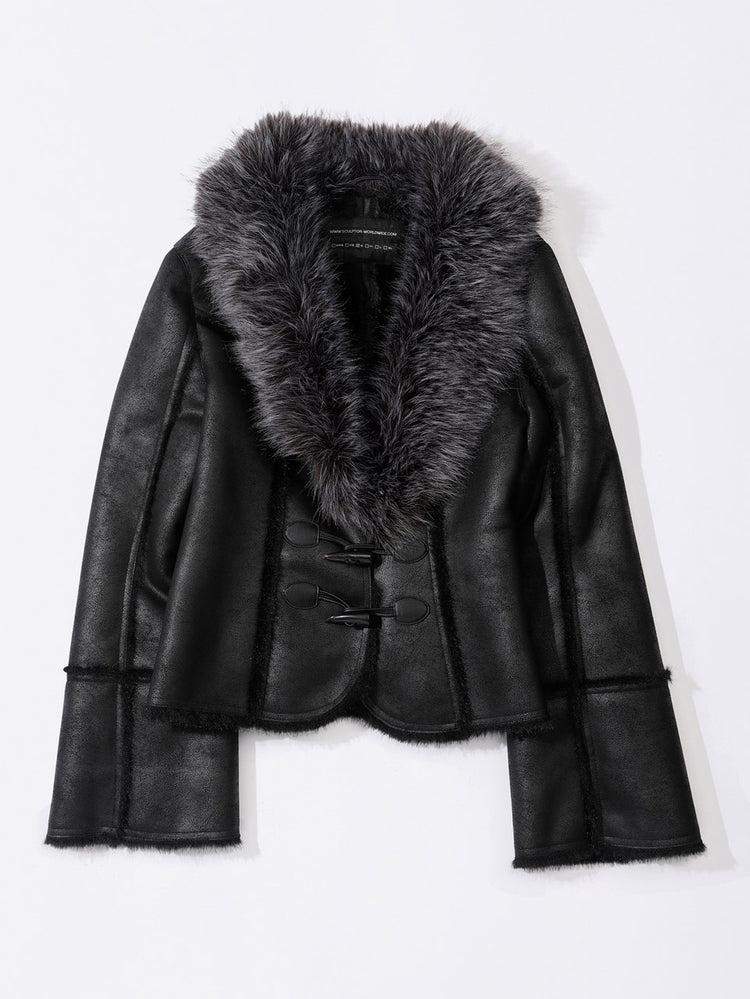 Faux Mouton Toggle Coat Black