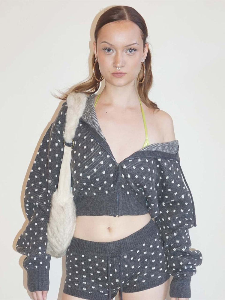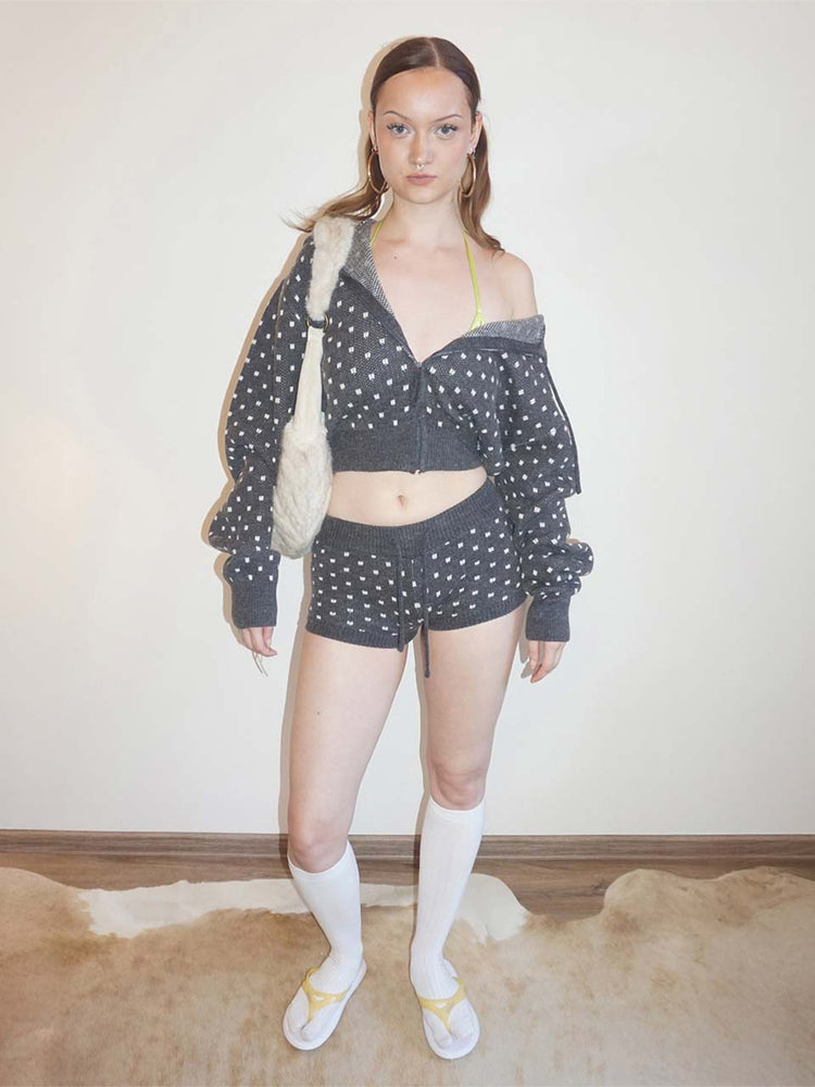 Snowflake Knit Zip-Up Gray