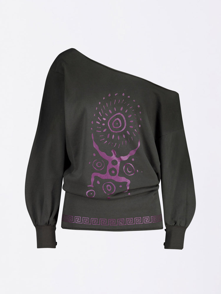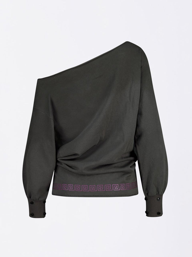 Boho Washed Off-Shoulder Tee Charcoal