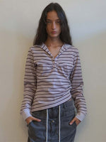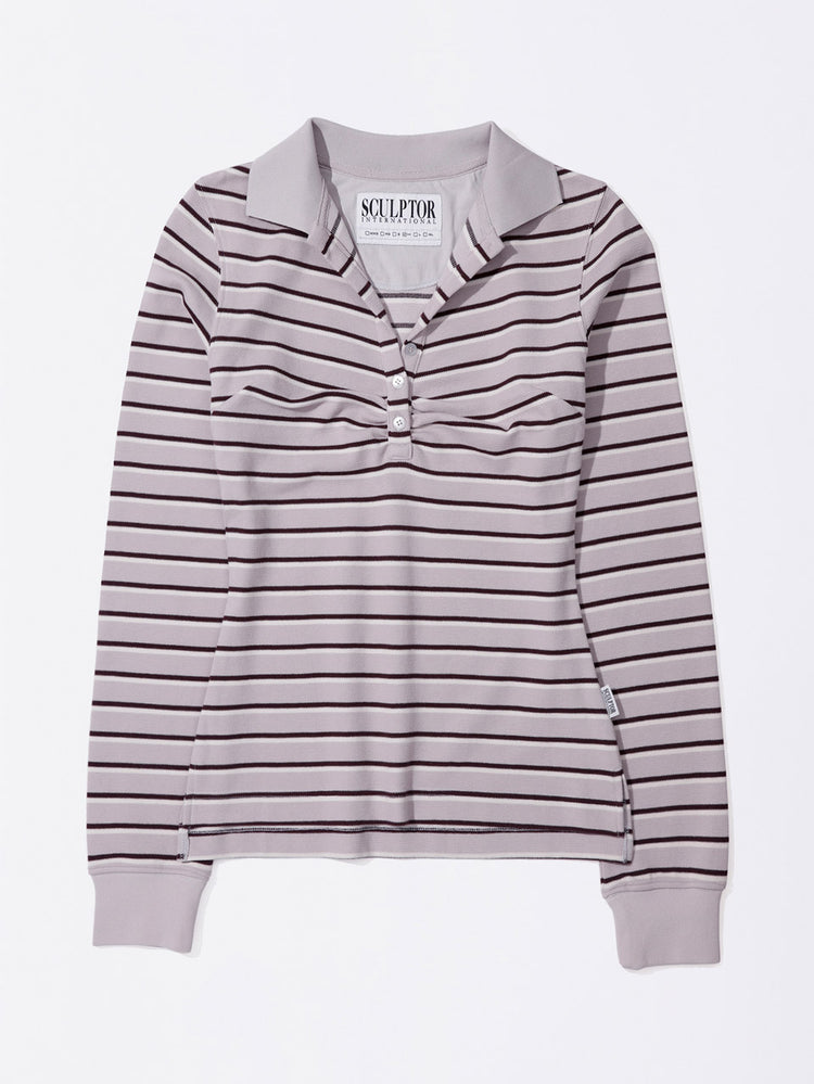 Shirring Tennis Shirt Lavender Stripe