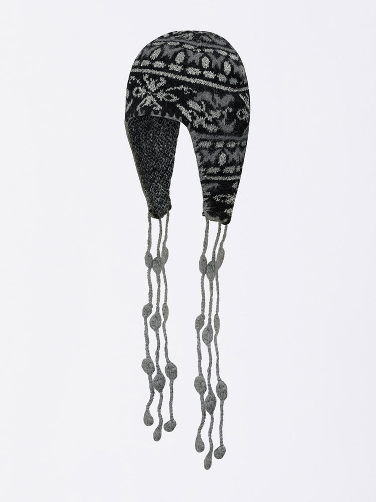 Sequin Nordic Earflap Beanie Black