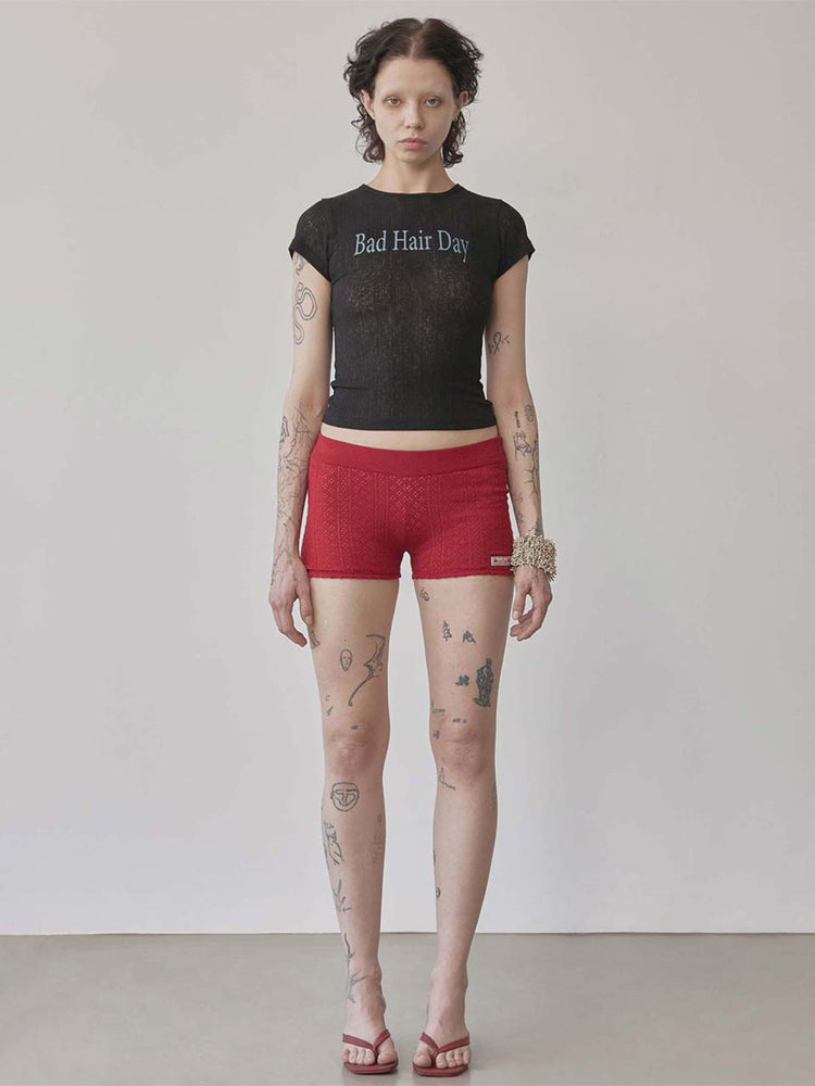 XS:着丈 45 / 肩幅 30 / 胸囲 33.5 / 袖 10 / 裾 32