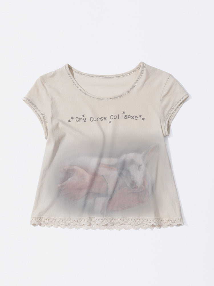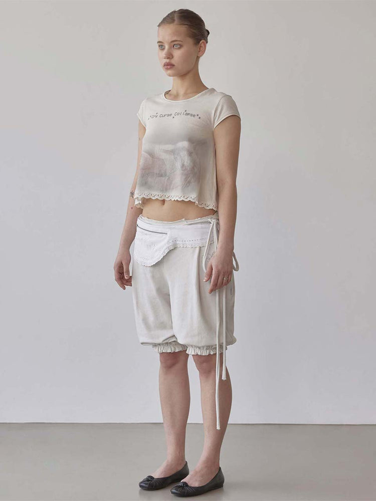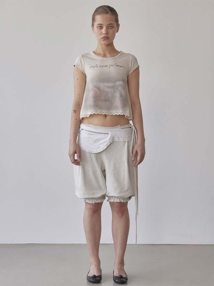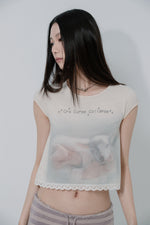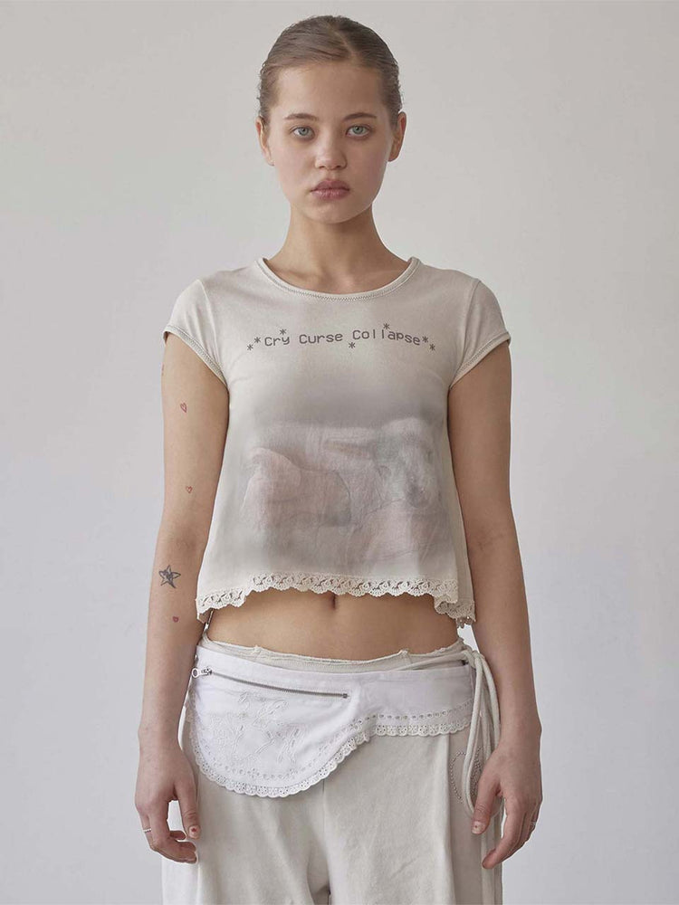 Lace Crop Baby Tee Nude Pink