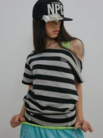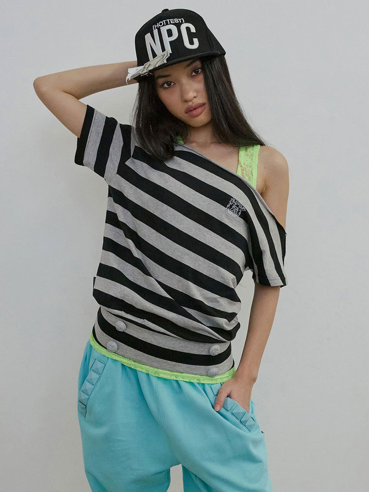 Button Stripe Tee Melange Gray